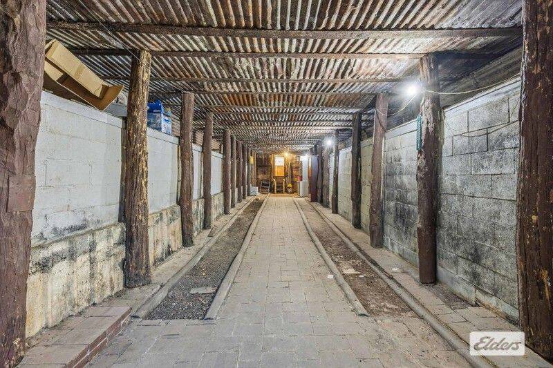 From the cottage, access is provided to the original underground cellar, leading to an impressive array of shedding and infrastructure. A rustic studio or "man cave," constructed from railway sleepers, includes a pot-belly wood heater, bar, and basic kitchen and bathroom amenities-ideal for entertaining, creative pursuits, or conversion to a studio, office, or showroom for a home-based business.